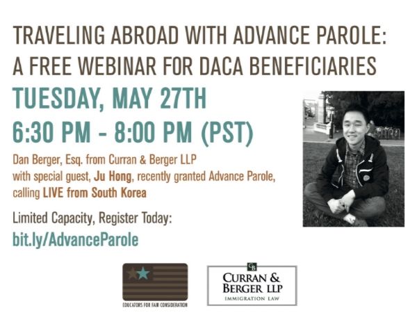 Sign up for our free online webinar, where we will be presenting information about how someone with DACA can travel outside of the United States.