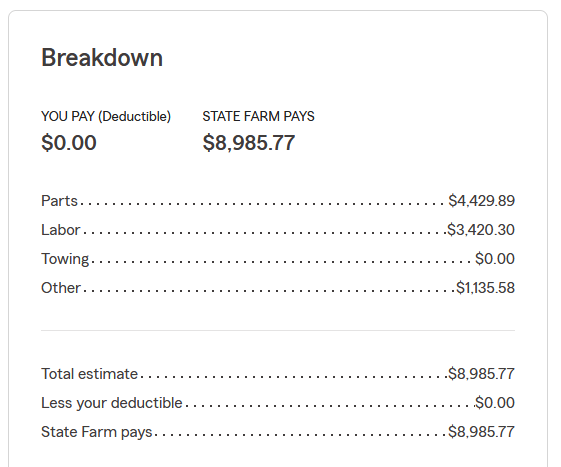 It got towed for free? Who paid the towing? Wow pretty big hit.
