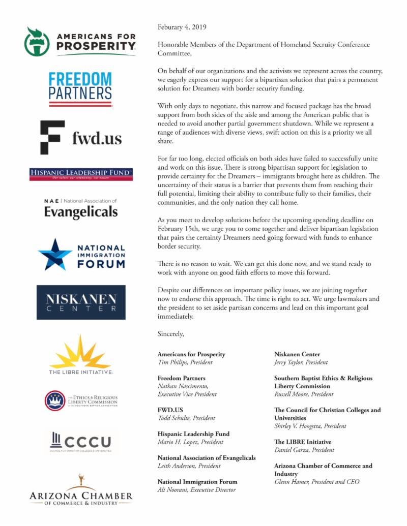 bipartisan group letter calling for permanent protections for Dreamers before Feb 15