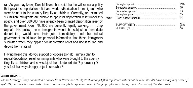 Re: New Poll: Americans Oppose Repealing DACA Program for DREAMers By 58-28% Margin